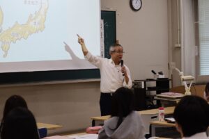 私は、「わかった」という実感と「考える力」を育む授業を目指したいです。そのためにはまず、子どもたちの興味を刺激する「問い」を授業の中心に据えることが重要だと考えます。そして、その問いを解決するために、ただ聞くだけでなく、自分の意見をしっかり出し合い、協力して考える活動を増やすべきだと先生の授業からも感じました。さまざまな資料から、子どもたちが多角的な視点から社会や歴史を捉えられるような環境を作りたいと思います。今回の講義を通じて感じたこと考えられたことを忘れず、子どもたち一人ひとりが主体的となり、自ら学びに向かう力を育てることができるよう、頑張りたいと思います。