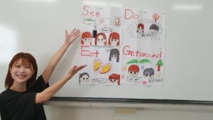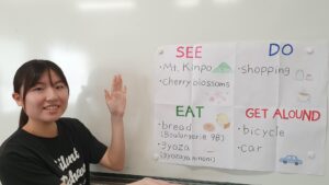 We enjoyed the presentations. Afterward, students talked with each other in English about where they want to visit and what they want to do there.